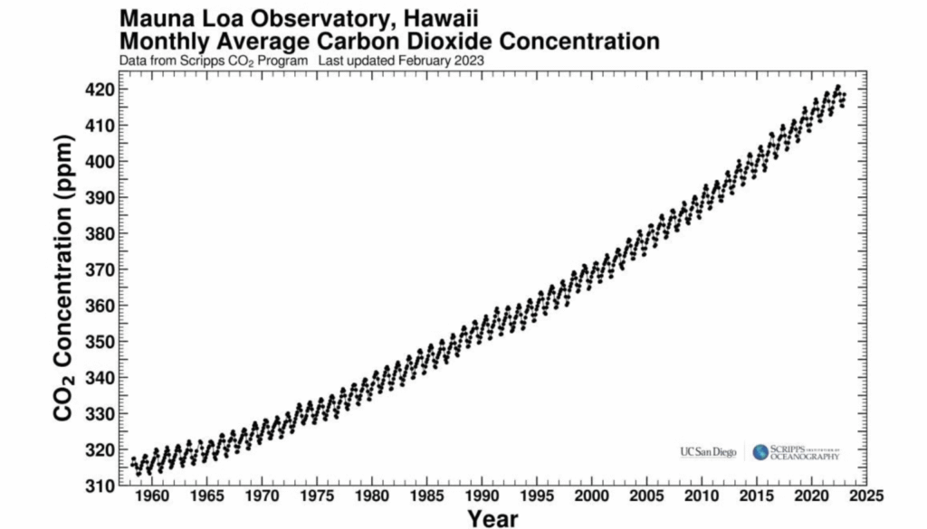 Desde que se negoció la CMNUCC en la Cumbre de la Tierra en Río de Janeiro en 1992, la concentración de dióxido de carbono (CO2) de calentamiento de efecto invernadero en la atmósfera global ha estado casi estabilizada. En cambio, ha aumentado de 359 partes por millón (ppm) a 425 ppm este año. Y el aumento se está acelerando. La Organización Meteorológica Mundial informa que de 2023 a 2024, la concentración media mundial de CO2 «aumentó en 3,5 ppm, el mayor aumento desde que comenzaron las mediciones modernas en 1957″. El aumento es en gran medida el resultado del aumento de las emisiones de la quema de petróleo, gas natural y carbón para producir la energía que impulsa el crecimiento económico.